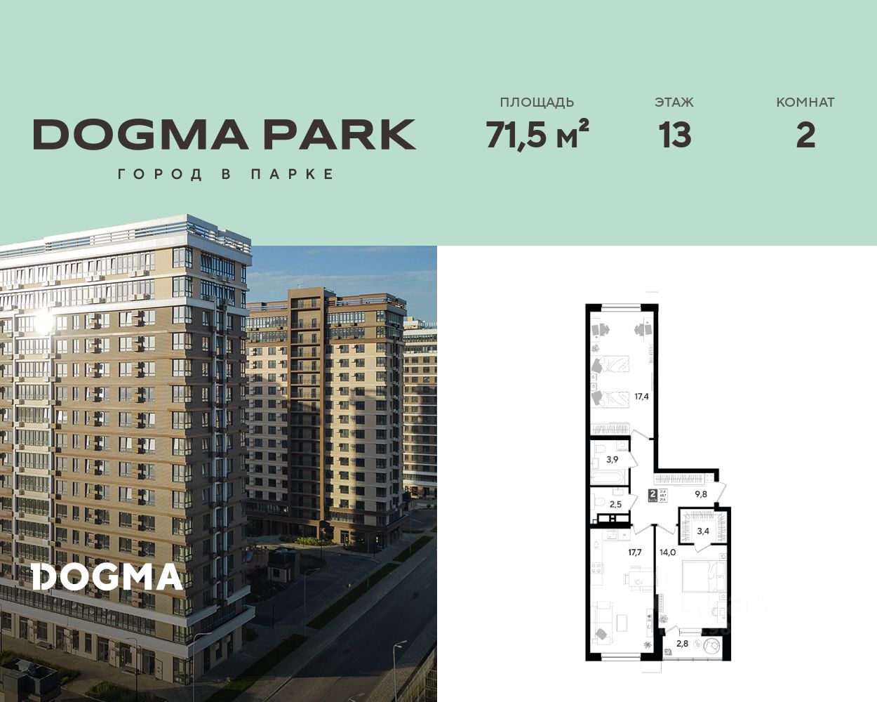 В продаже 2-комнатная квартира от застройщика! Мкр. "DOGMA PARK" г. Краснодар, Литер 8 Срок сдачи: 4 кв. 2026, общей площадью 71.5 кв.м., на 13 этаже.