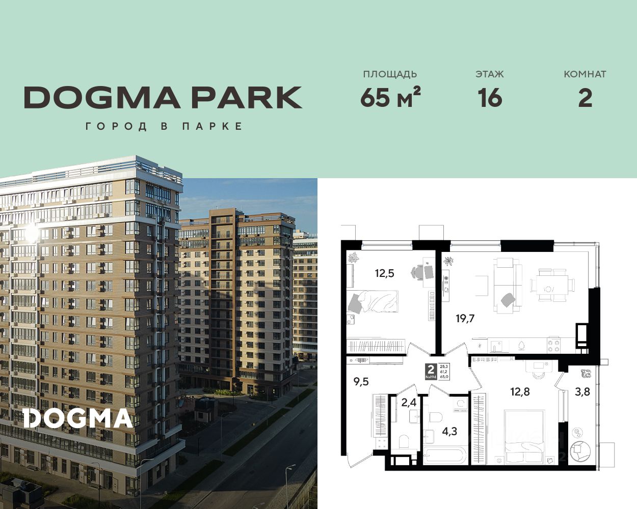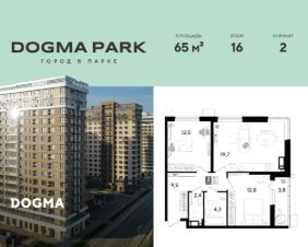 В продаже 2-комнатная квартира от застройщика! Мкр. "DOGMA PARK" г. Краснодар, Литер 8 Срок сдачи: 4 кв. 2026, общей площадью 65 кв.м., на 16 этаже.