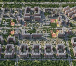 Самолёт — современный 16-этажный жилой комплекс с продуманной архитектурой, закрытыми дворами, спортивными и детскими площадками, прогулочными зонами и ландшафтным озеленением.