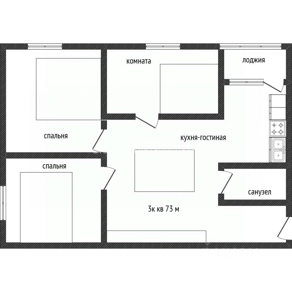 Арт. 123614128 3-к квартира 70 м2 с уникальной планировкой - три комнаты + кухня-гостиная 25 кв.м.! Качественный ремонт, все на фото остается, утепленная лоджия. Без обременений, готовы к сделке!