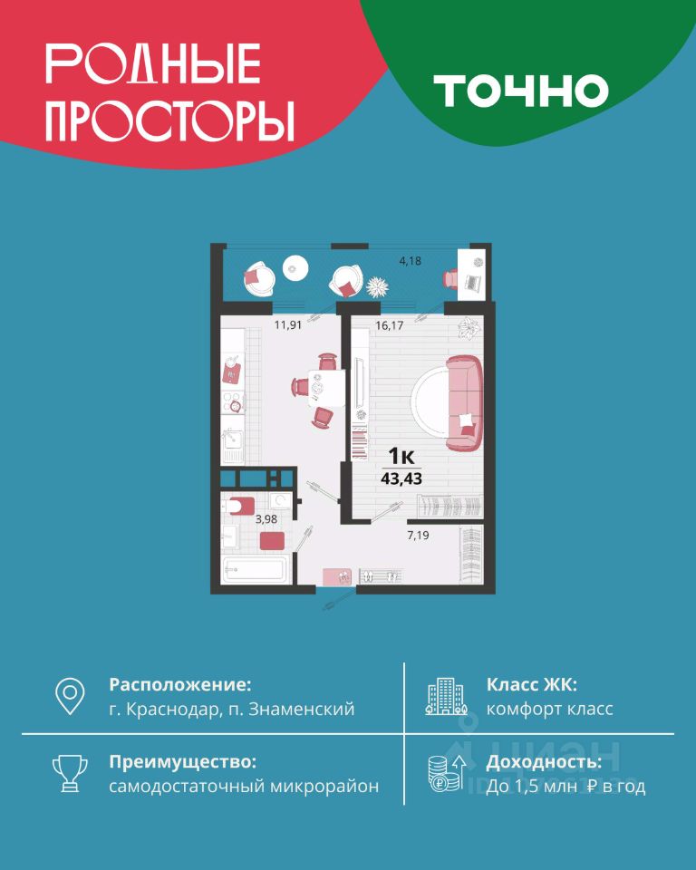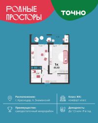 "Родные просторы"- самодостаточный микрорайон, который реализован по принципу комплексного развития территории, где есть вся инфраструктура для комфортной жизни. На территории 41 га 29 домов от 9 до 24 этажей, уютные дворы со спортивными и игровыми площадками, социальные и коммерческие объекты, зеленые массивы и фонтаны. Главная точка притяжения "Родных просторов" - парк семейного отдыха площадью 9 га, 4,5 км прогулочных аллей, амфитеатр для мероприятий, кинофестивальная площадка. Особая гордость микрорайона современная школа на 1550 мест и 3 детских сада "Ладушки", "Веснушки" и "Топотушки" на 880 малышей. В центре микрорайона строятся фитнес-клуб BALANCE с акватермальным комплексом и собственная поликлиника, площадью более 5000 кв.м. Уже открыт православный храм Святых Первоверховных апостолов Петра и Павла.