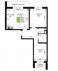 Продается просторная двухкомнатная квартира площадью 59.3 кв. м, расположенная на 10-м этаже 17-этажного кирпичного дома 2022 года постройки. Жилая площадь составляет 40 кв. м, а кухня радует просторными 14.5 кв. м. Высота потолков — 2.7 метра, что создает ощущение свободы и простора.