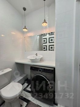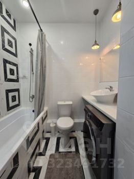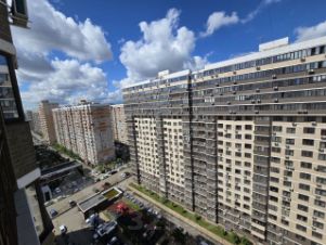 В квартире сделан свежий современный ремонт. Практически никто не жил. Жилая комната изолированная, установлена сплит-система, кровать и телевизор. В гостиной -диван, шкаф для вещей. На кухне установлен кухонный гарнитур и обеденная зона.
