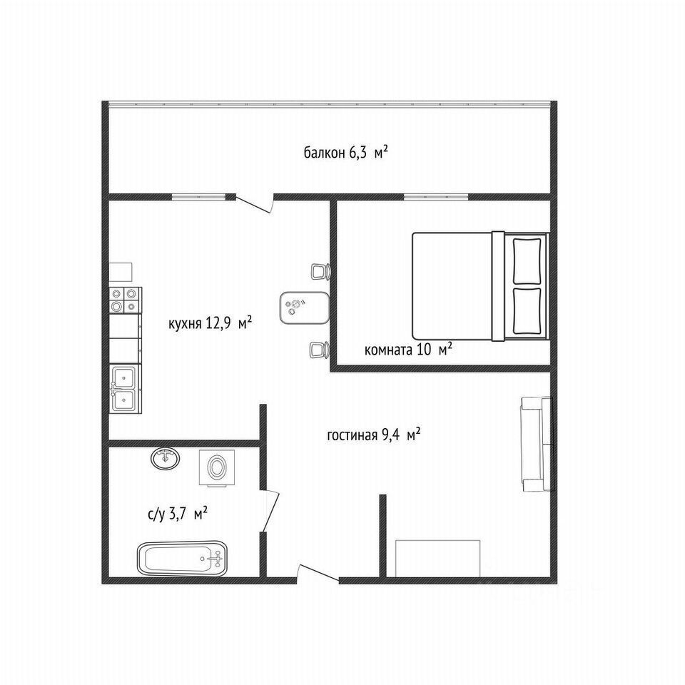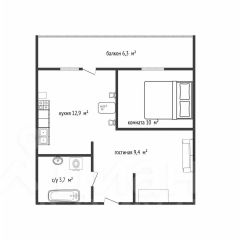 Площадь квартиры 36 м2 + балкон 6,3 м2.