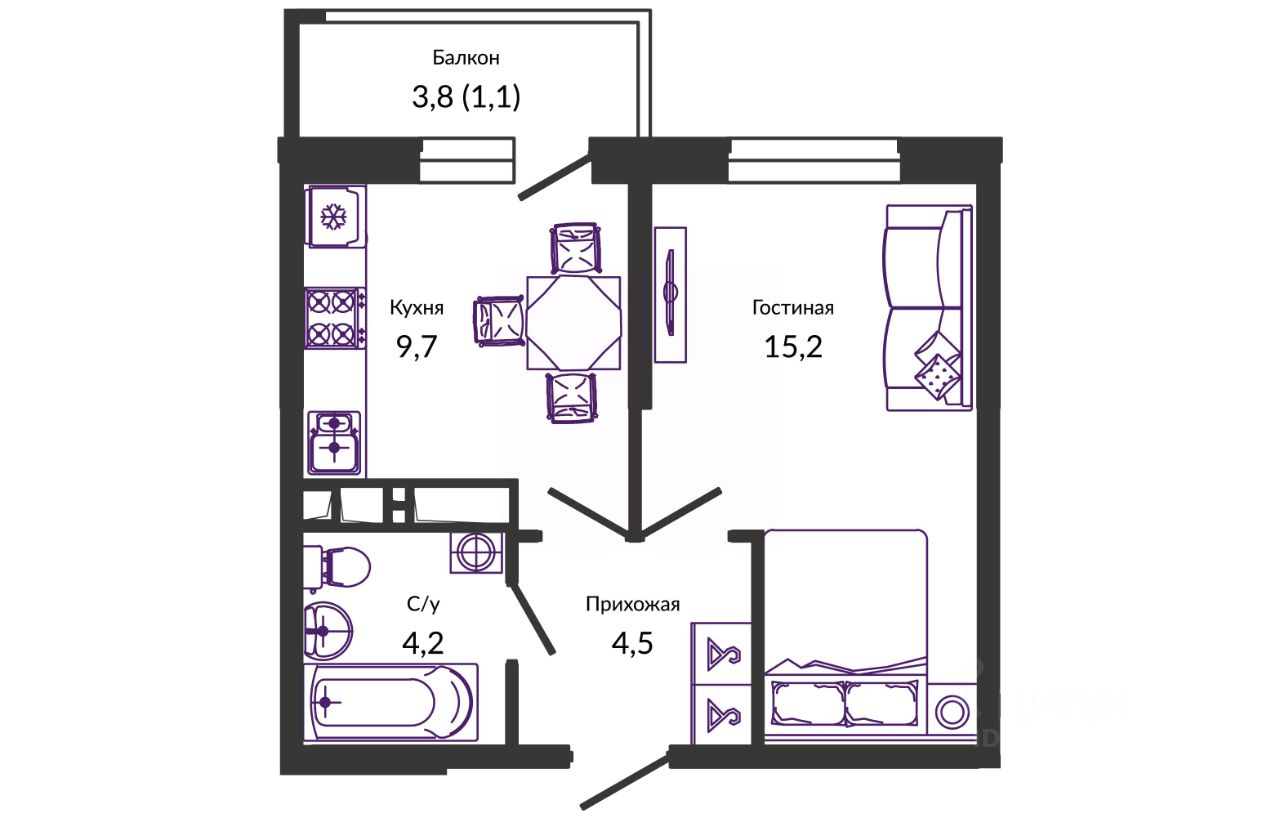 Жилая площадь15,4 м²