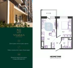 Продается квартира в жилом комплексе "Улыбка" от федерального девелопера "Неометрия". Все дома сданы, ключи в день сделки.