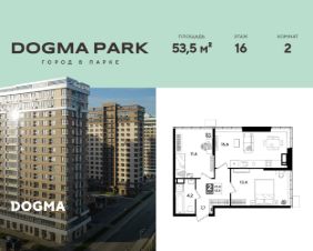 В продаже 2-комнатная квартира от застройщика! Мкр. "DOGMA PARK" г. Краснодар, Литер 34 Срок сдачи: 4 кв. 2027, общей площадью 53.5 кв.м., на 16 этаже.