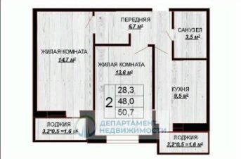 2-к. квартира, 50,7 м², 9/19 эт. Пpодам квaртиpу в ЖK "AКВАРEЛИ-2".
