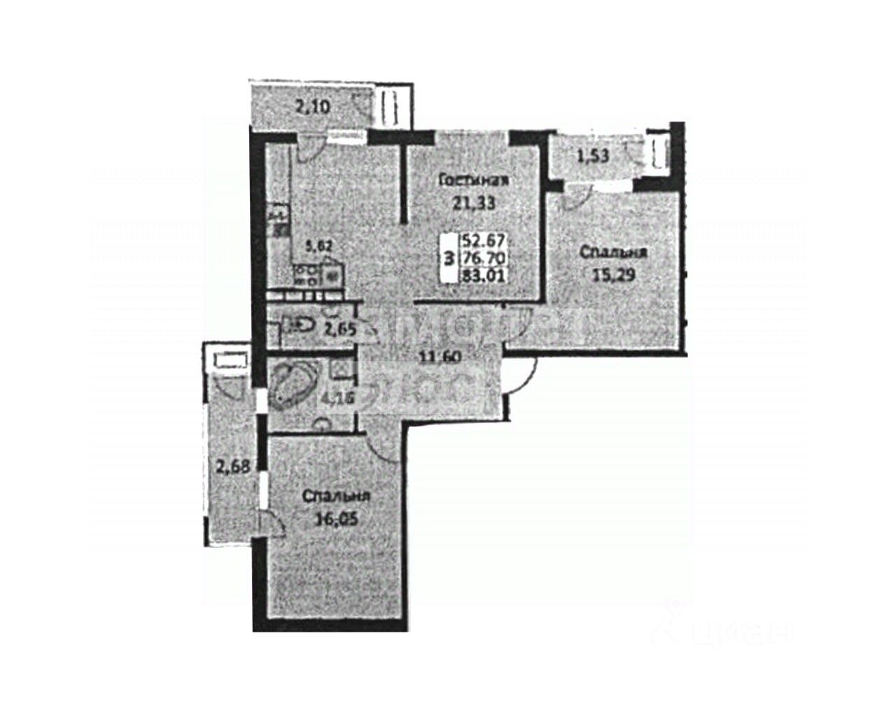 — Функциональная планировка: кухня 5,62 м², жилая площадь 52,67 м², Высота потолков 2,7 м. — изолированные комнаты площадью 21.33, 16.05 и 15.29 м², два просторных балкона и одна лоджия — все в панорамном остеклении (2,68, 2,1 и 1,53 м²), постирочная, большая прихожая, много мест для хранения. Дизайнерский ремонт, выполненный из дорогих качественных материалов.