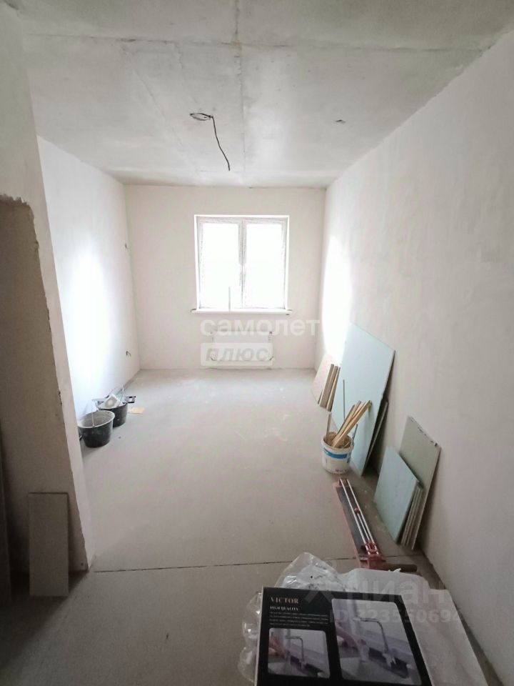 В квартире предчистовая отделка - стены оштукатурены, стяжка пола, выполнена разводка электросети, установлены счетчика водоснабжения и индивидуального теплоснабжения.