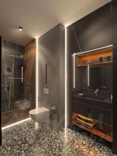 - Санузлы: два совмещённых, один оборудован душем, второй ванной.