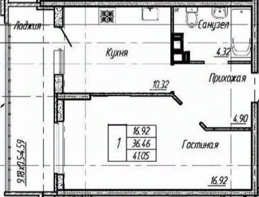 Общая площадь: 41 м2