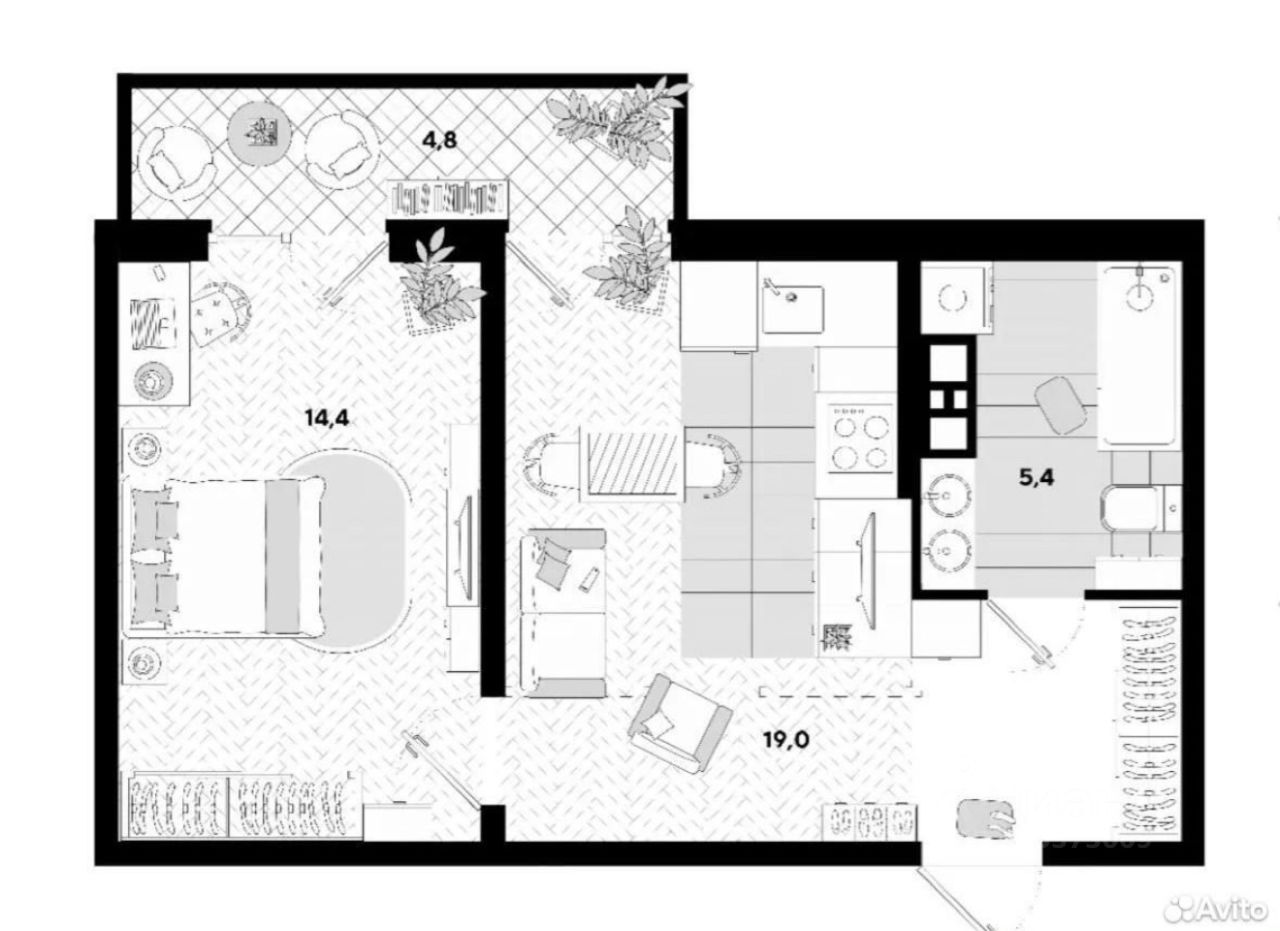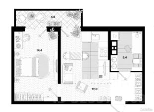 1 лоджия, 1 балкон