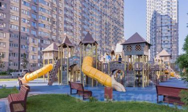 Во дворе детская площадка и места для парковки.