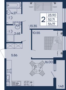 2 комнатная квартира с ремонтом 54.19 м², на 3 этаже в жилом комплексе "Дом 101".