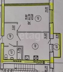 Общая площадь 44.7 кв.м, комната 19.8 кв.м, просторная кухня 14.6 кв.м, совмещенный санузел, отделка керамической плиткой. Балкон с видом на двор. Выполнен качественный, косметический ремонт, установлены металлопластиковые окна.