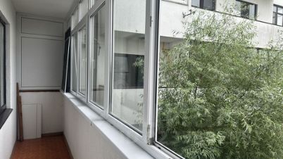 Из окон открывается приятный вид на зелёный двор. Лоджия застеклена, что позволяет использовать её как дополнительное пространство для отдыха.