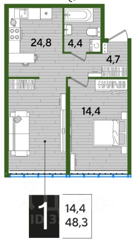 Формат квартиры - Мини-2 , где есть полноценная спальня , кухня и просторный зал с зоной для отдыха.