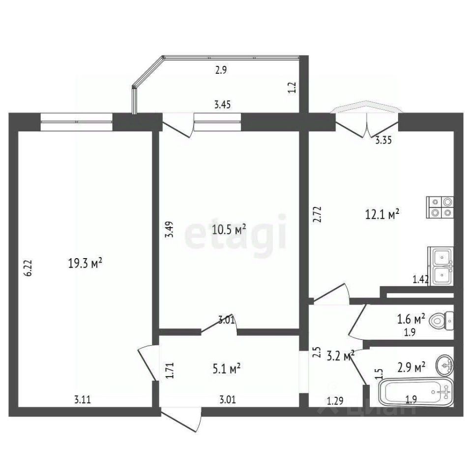 12,1 м²