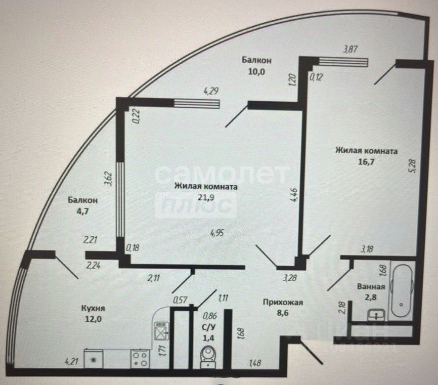 Просторная уютная планировка с 2 балконами и видом на тихий благоустроенный двор.