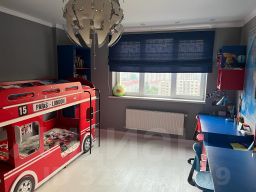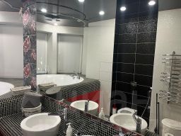 Комнаты большие, изолированные. Кухня совмещена с гостиной 40 м. Один балкон в спальной. Один санузел с двумя раковинами на консольной столешнице и джакузи на пьедестале диаметром 1,8 метра с тропически душем, водонагреватель. Отдельная гардеробная с системой складирования IКЕА и стегальной машиной. В спальной большая кровать 2х2.2 м и прочей мебелью с отделкой белой эко-кожей. В прихожей огромный вместительный шкаф-купе. В детской двухъярусная кровать, двойной письменный стол и шкафы сделанные под заказ. В каждой комнате инверторный кондиционер НАIЕR.