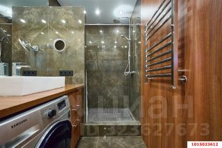 В санузле установлена душевая, стиральная машина SAMSUNG, водонагреватель themex, теплый пол, датчики протечек.