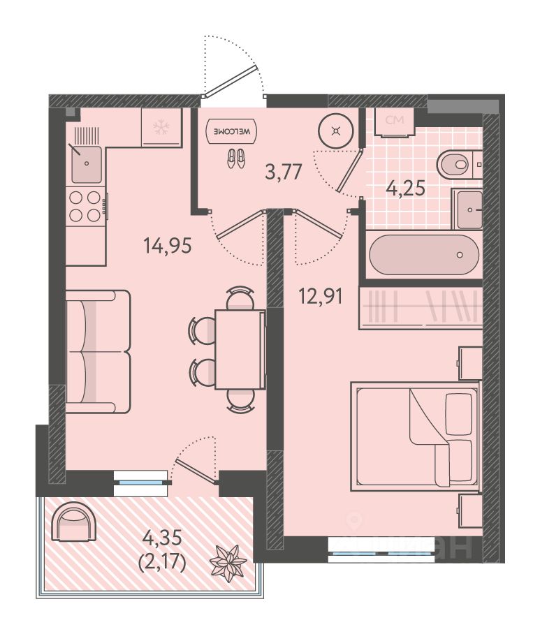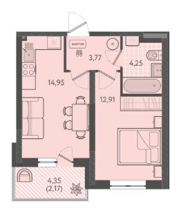Жилая площадь12,9 м²
