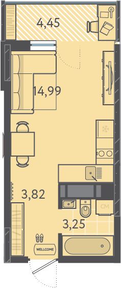 Общая площадь23,35 м²