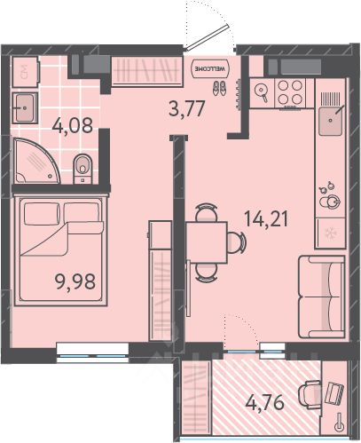 Площадь кухни14,2 м²