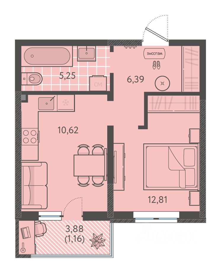 Жилая площадь12,8 м²