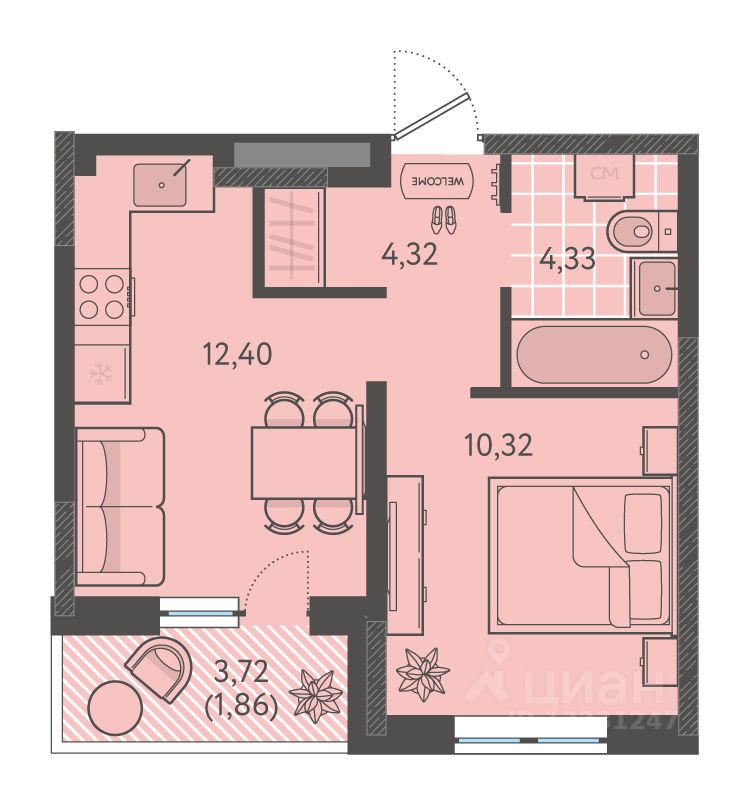 12,4 м²