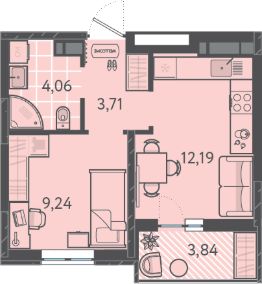 Площадь кухни12,2 м²