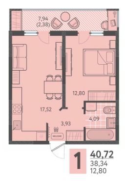 Общая площадь40,33 м²