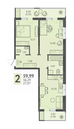 Общая площадь60,64 м²