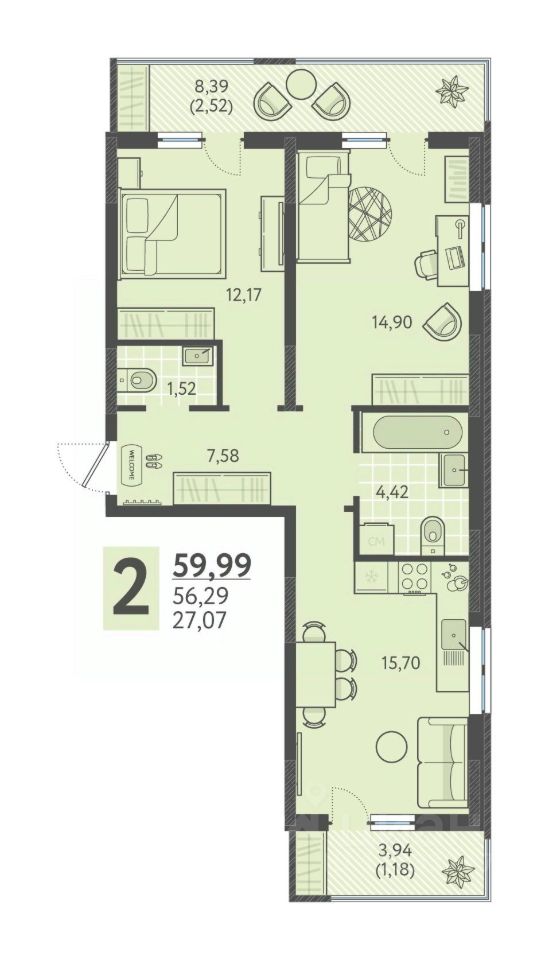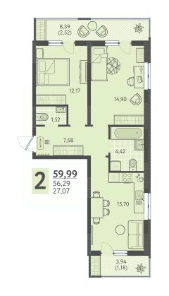 Общая площадь59,99 м²