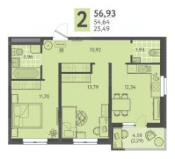 Общая площадь56,93 м²