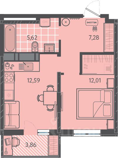 Площадь кухни12,6 м²