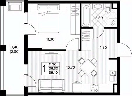 Продаётся 1-комнатная квартира в строящемся доме (поз.7), срок сдачи: IV-кв. 2027, общей площадью 39.1 кв.м., на 2 этаже. Новый жилой комплекс "Кипарис" от застройщика "AVA" расположен по адресу: Россия, Краснодарский край, муниципальный округ Анапа, село Сукко, Мирная улица