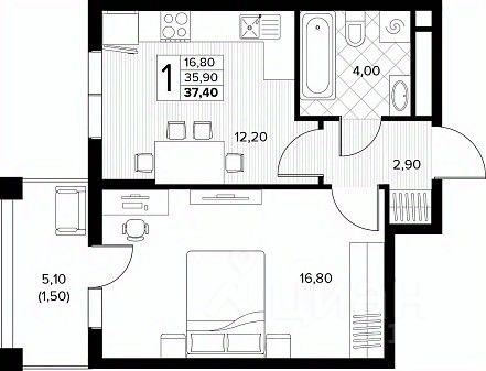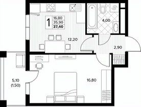 Продаётся 1-комнатная квартира в строящемся доме (поз.7), срок сдачи: IV-кв. 2027, общей площадью 37.4 кв.м., на 5 этаже. Новый жилой комплекс "Кипарис" от застройщика "AVA" расположен по адресу: Россия, Краснодарский край, муниципальный округ Анапа, село Сукко, Мирная улица