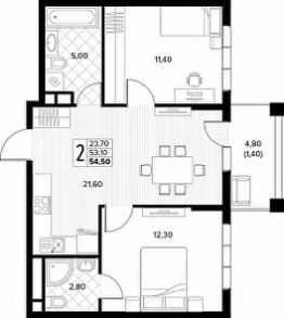 54,5 м²