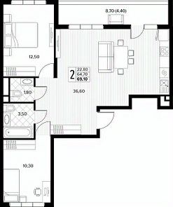 Продаётся 2-комнатная квартира в строящемся доме (поз.7), срок сдачи: IV-кв. 2027, общей площадью 69.1 кв.м., на 4 этаже. Новый жилой комплекс "Кипарис" от застройщика "AVA" расположен по адресу: Россия, Краснодарский край, муниципальный округ Анапа, село Сукко, Мирная улица