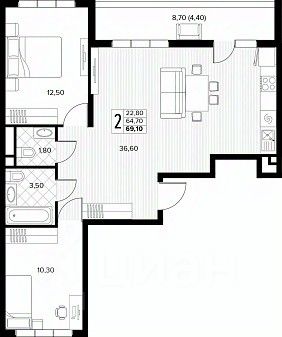 Продаётся 2-комнатная квартира в строящемся доме (поз.7), срок сдачи: IV-кв. 2027, общей площадью 69.1 кв.м., на 6 этаже. Новый жилой комплекс "Кипарис" от застройщика "AVA" расположен по адресу: Россия, Краснодарский край, муниципальный округ Анапа, село Сукко, Мирная улица