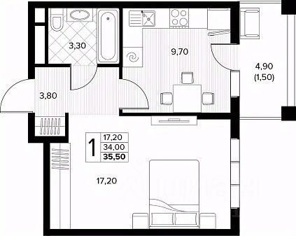 Продаётся 1-комнатная квартира в строящемся доме (поз.7), срок сдачи: IV-кв. 2027, общей площадью 35.5 кв.м., на 4 этаже. Новый жилой комплекс "Кипарис" от застройщика "AVA" расположен по адресу: Россия, Краснодарский край, муниципальный округ Анапа, село Сукко, Мирная улица
