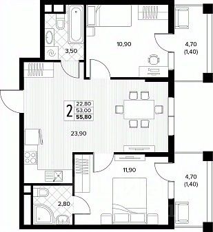 Продаётся 2-комнатная квартира в строящемся доме (поз.7), срок сдачи: IV-кв. 2027, общей площадью 55.8 кв.м., на 2 этаже. Новый жилой комплекс "Кипарис" от застройщика "AVA" расположен по адресу: Россия, Краснодарский край, муниципальный округ Анапа, село Сукко, Мирная улица