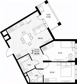 Продаётся 2-комнатная квартира в строящемся доме (поз.7), срок сдачи: IV-кв. 2027, общей площадью 60.7 кв.м., на 3 этаже. Новый жилой комплекс "Кипарис" от застройщика "AVA" расположен по адресу: Россия, Краснодарский край, муниципальный округ Анапа, село Сукко, Мирная улица