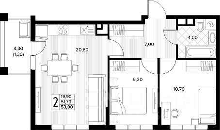 Продаётся 2-комнатная квартира в строящемся доме (поз.6), срок сдачи: IV-кв. 2027, общей площадью 53 кв.м., на 6 этаже. Новый жилой комплекс "Кипарис" от застройщика "AVA" расположен по адресу: Россия, Краснодарский край, муниципальный округ Анапа, село Сукко, Мирная улица