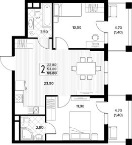 Продаётся 2-комнатная квартира в строящемся доме (поз.6), срок сдачи: IV-кв. 2027, общей площадью 55.8 кв.м., на 2 этаже. Новый жилой комплекс "Кипарис" от застройщика "AVA" расположен по адресу: Россия, Краснодарский край, муниципальный округ Анапа, село Сукко, Мирная улица