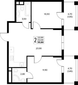 Продаётся 2-комнатная квартира в строящемся доме (поз.6), срок сдачи: IV-кв. 2027, общей площадью 55.8 кв.м., на 2 этаже. Новый жилой комплекс "Кипарис" от застройщика "AVA" расположен по адресу: Россия, Краснодарский край, муниципальный округ Анапа, село Сукко, Мирная улица