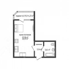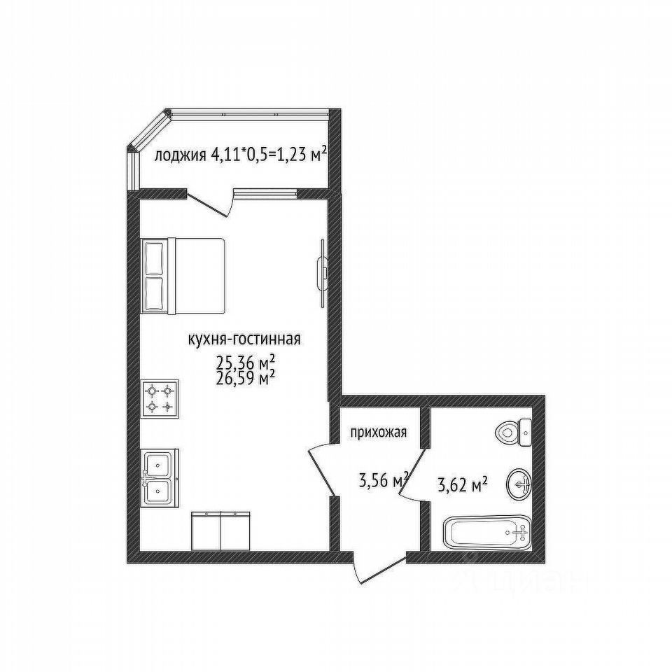 По выпиcкe EГPH 25,4 кв м плюc лоджия, итого oкoло 30 кв м