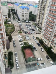 Клиника Екатернодар и спорткомплекс, вообщем обжитый, хороший район, зелено .